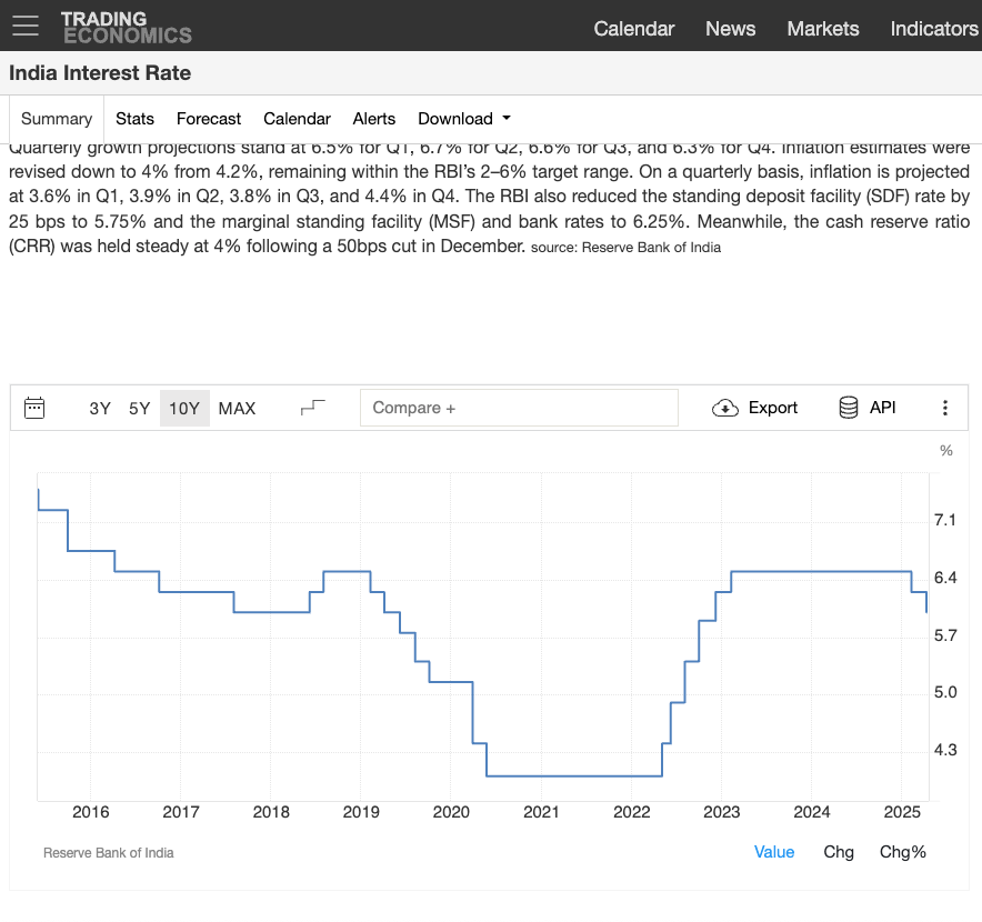 Another critical factor is that the Indian inflation rate has been constant at 6.5% for almost two years and has witnessed rate cuts by the RBI over the past few months. The current interest rates are at 6%. If Indian inflation remains under 5%, we can expect the repo rate to fall below 6%.
