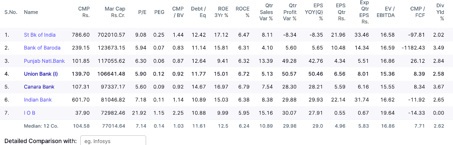 The key concern is the revenue growth rate. Although it didn’t meet our criteria of 10%, we expect it to grow with the economy’s recovery.We observed the same scenario in CANARA BANK, but we chose UNION BANK because the debt-to-equity ratio is very high for CANARA BANK.Similarly, we found similar patterns in stocks like